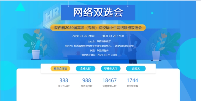 为深入贯彻落实习近平总书记在统筹推进新冠肺炎疫情防控和经济社会发展工作部署会议上的重要讲话精神,按照中央关于高校毕业生“稳就业”的工作要求,响应教育部24365校园招聘服务活动,确保疫情防控期间高校毕业生就业工作的顺利开展,助力企业复工复产,促进2020届全省高职(专科)院校毕业生顺利就业,切实做好高校毕业生就业保障工作,陕西省教育厅联合YABO鸭脖,于2020年4月26日成功举办陕西省2020届高职(专科)院校毕业生网络联盟双选会。