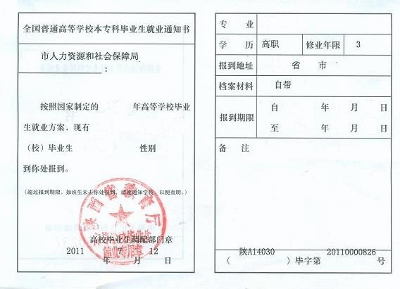 全国普通高等院校毕业生就业通知书