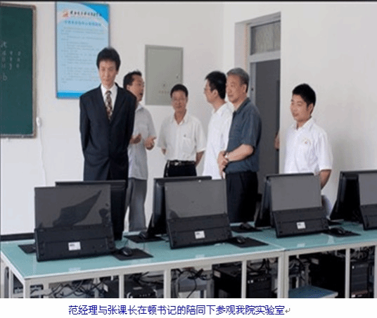 会后,范经理、张课长饶有兴致地在顿书记等学院领导的陪同下参观了城规交通实训室、电工实训室,移动通信实训室、单片机实训室、计算机等实训室和图书馆对我院的教学条件给予了高度的评价。